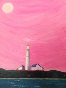 Title: Scenery at sunset on the seaside with a view of the lighthouse_Acrylic_410x318x20mm